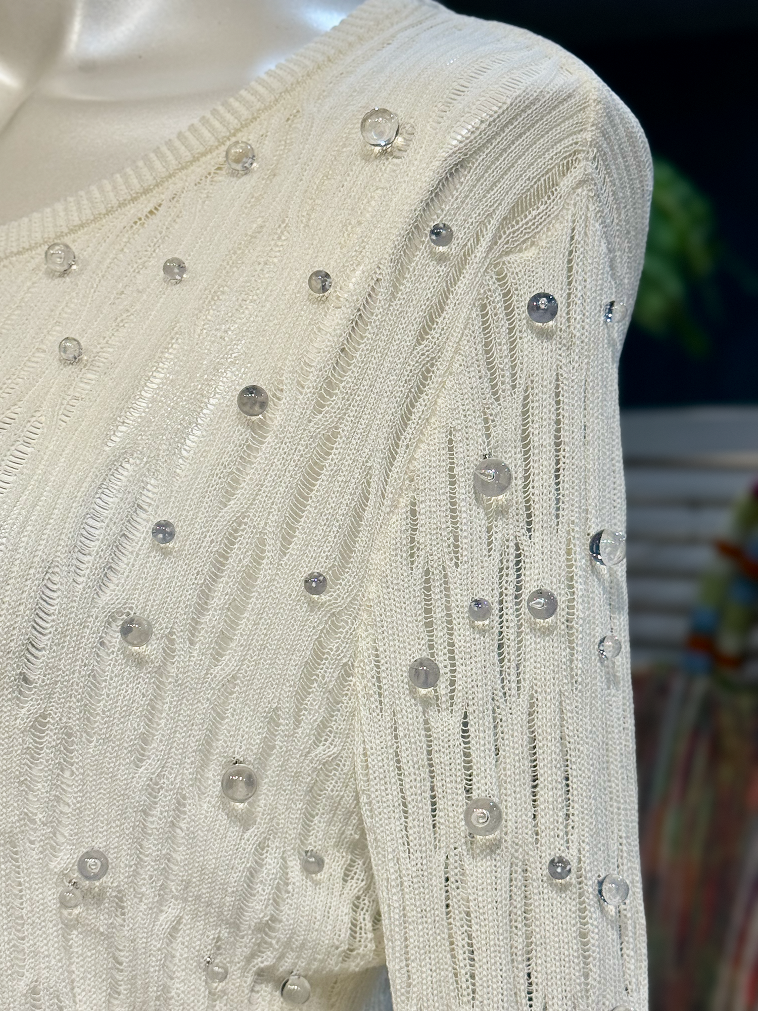 水滴のような優雅なモチーフが特徴的な、水滴モチーフ長袖ニット(オフホワイト)♪