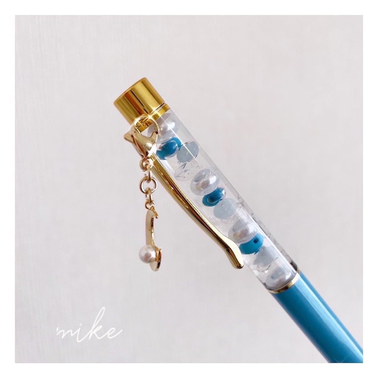 パールと天然石を組み合わせた、上品なデザインのハーバリウムボールペン。