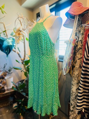 華やかな小花柄が魅力的なホルターネック膝丈ワンピース。