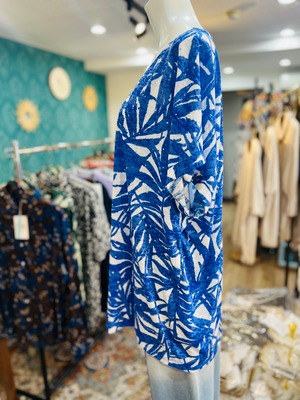 華やかなボタニカル柄が魅力の【フランス】ボタニカル柄Blueチェニックです。洗練されたデザインが、あなたのスタイルに華やかさをプラスし、軽やかな着心地が、日常のコーディネートに新たな魅力を与え、周囲の視線を引きつけることでしょう。